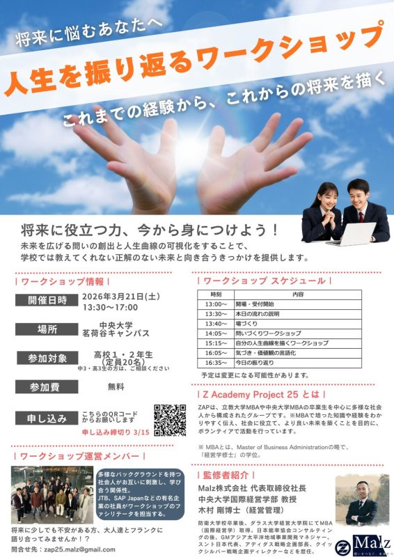 ZAP25メンバー主催「高校生向けワークショップ」を開催します
